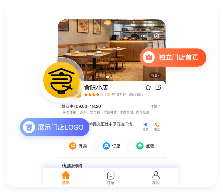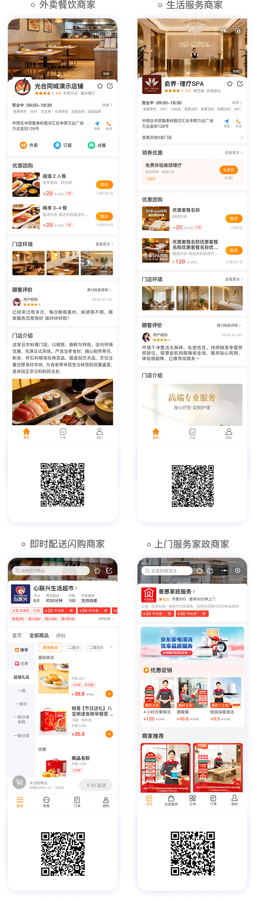 全场景适配:外卖店铺、餐饮预订、闪购商城、酒店预订、上门服务、团购好店,覆盖全行业主流场景,功能完整保留,用户操作路径不改变,消费体验更纯粹;